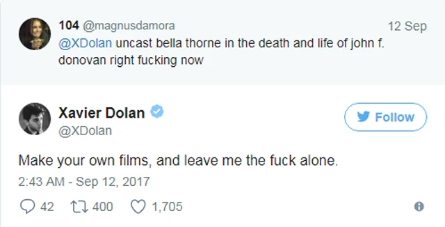 Egy kommentelő tegnap egyenesen Dolannak írt Twitteren, hogy "most rögtön" távolítsa el Bellát új filmje stábjából, a rendező azonban nem hagyta magát: