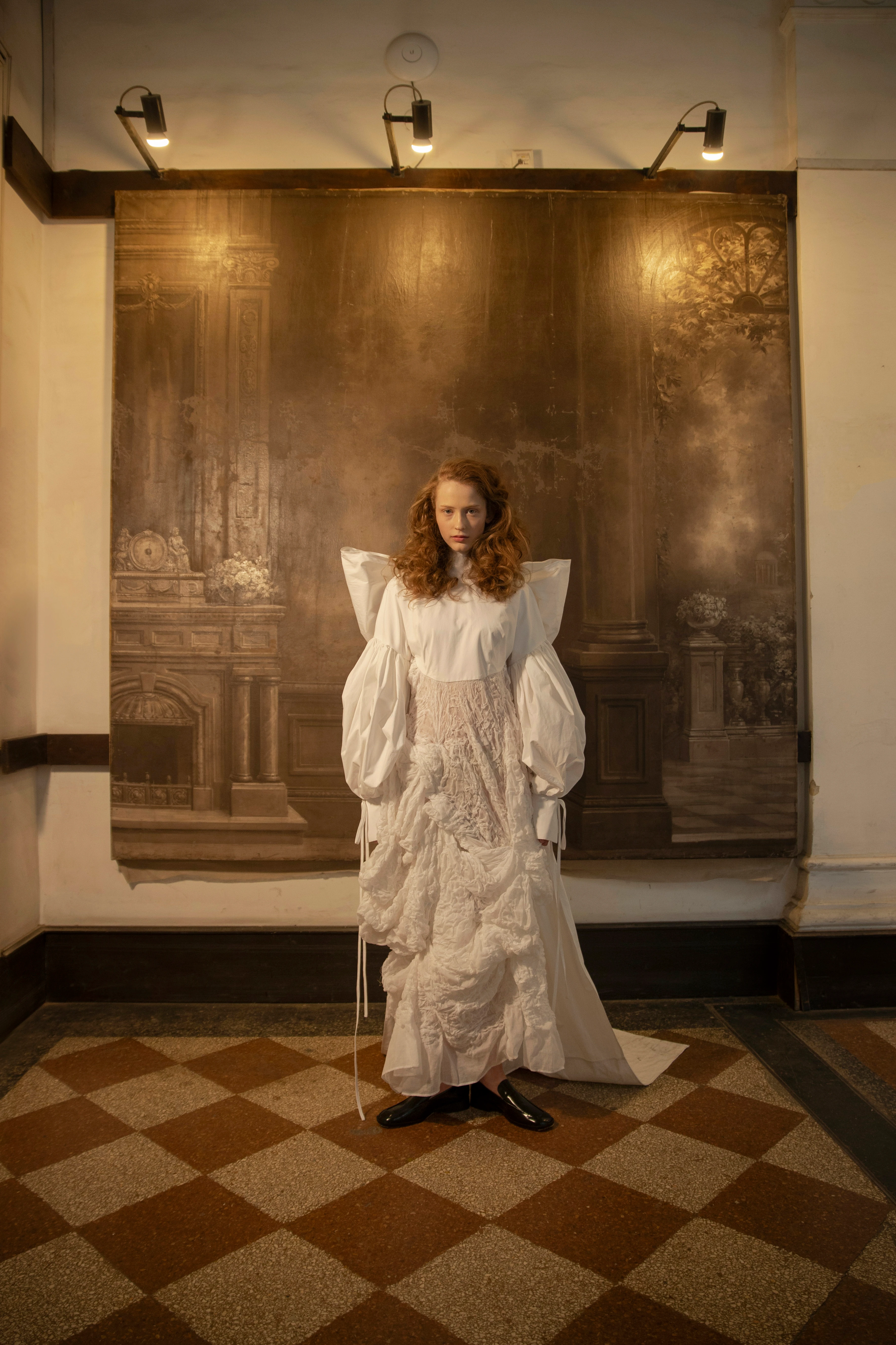 „A Syoss Fashion Show-ra készített kollekcióm koncepciója az önismereti fejlődés folyamatának bemutatására fókuszál. A három look közül az első a képen látható ‘MESS’ ruha egy kezdeti, kusza állapotot szimbolizál. Ezen a fehér 100% pamutból készült öltözéken belül az eltúlzott méretű masni és a puffos ujjak nagyvonalú formavilága a szélsőséges érzelmekre, míg a részletgazdag, absztrakt hímzett ‘subtraction cutting’ szoknya a lelki világ összetett, bonyolult rendszerére utal.”