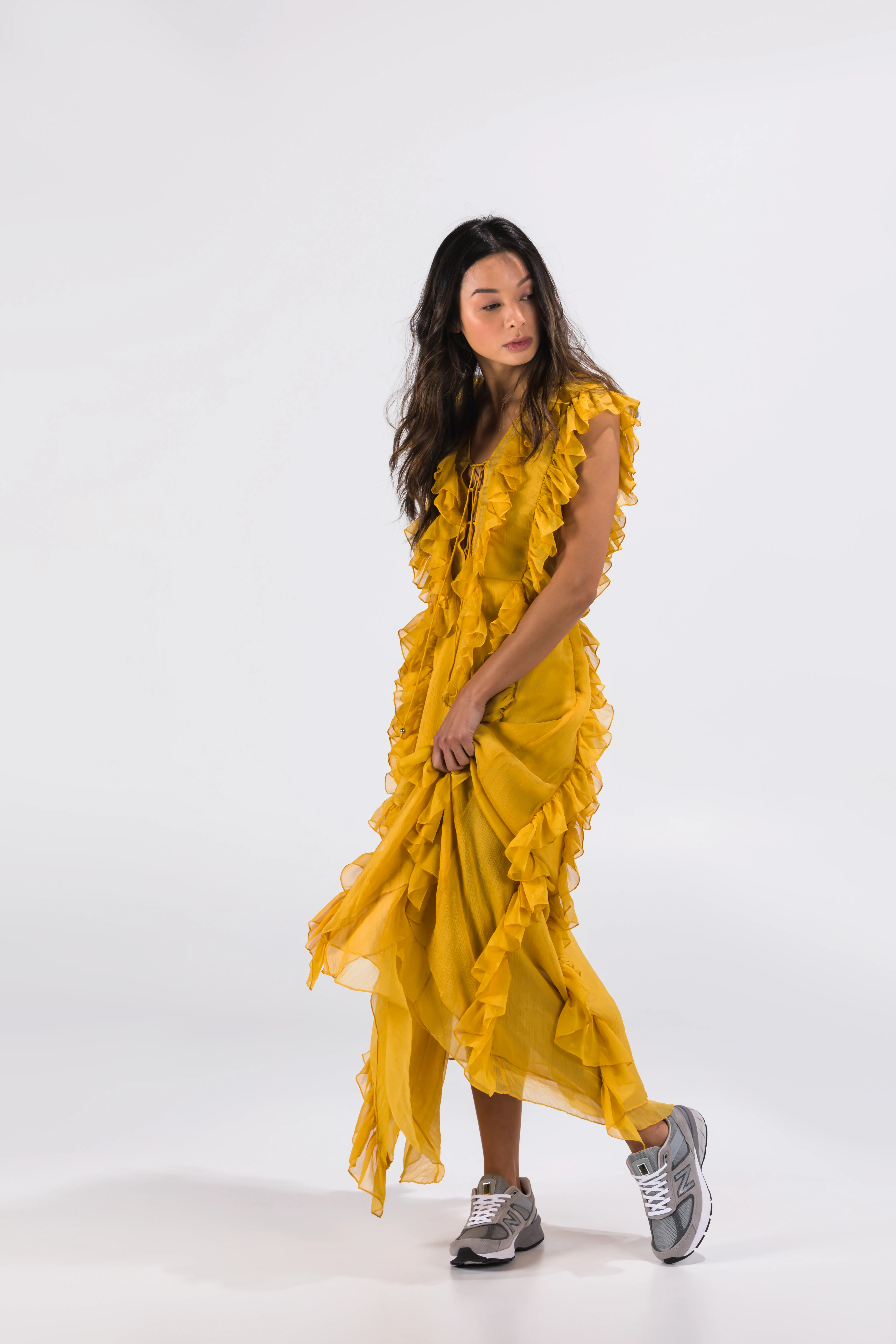Kaia Gerber gyakran kombinálja elegáns szettekkel, míg Alessandra Ambrosio vagy Addison Rae inkább a sportos napokon hordja a 990-t, ami ugyanúgy megállja a helyét a reggeli futásoknál, mint a kifutón.