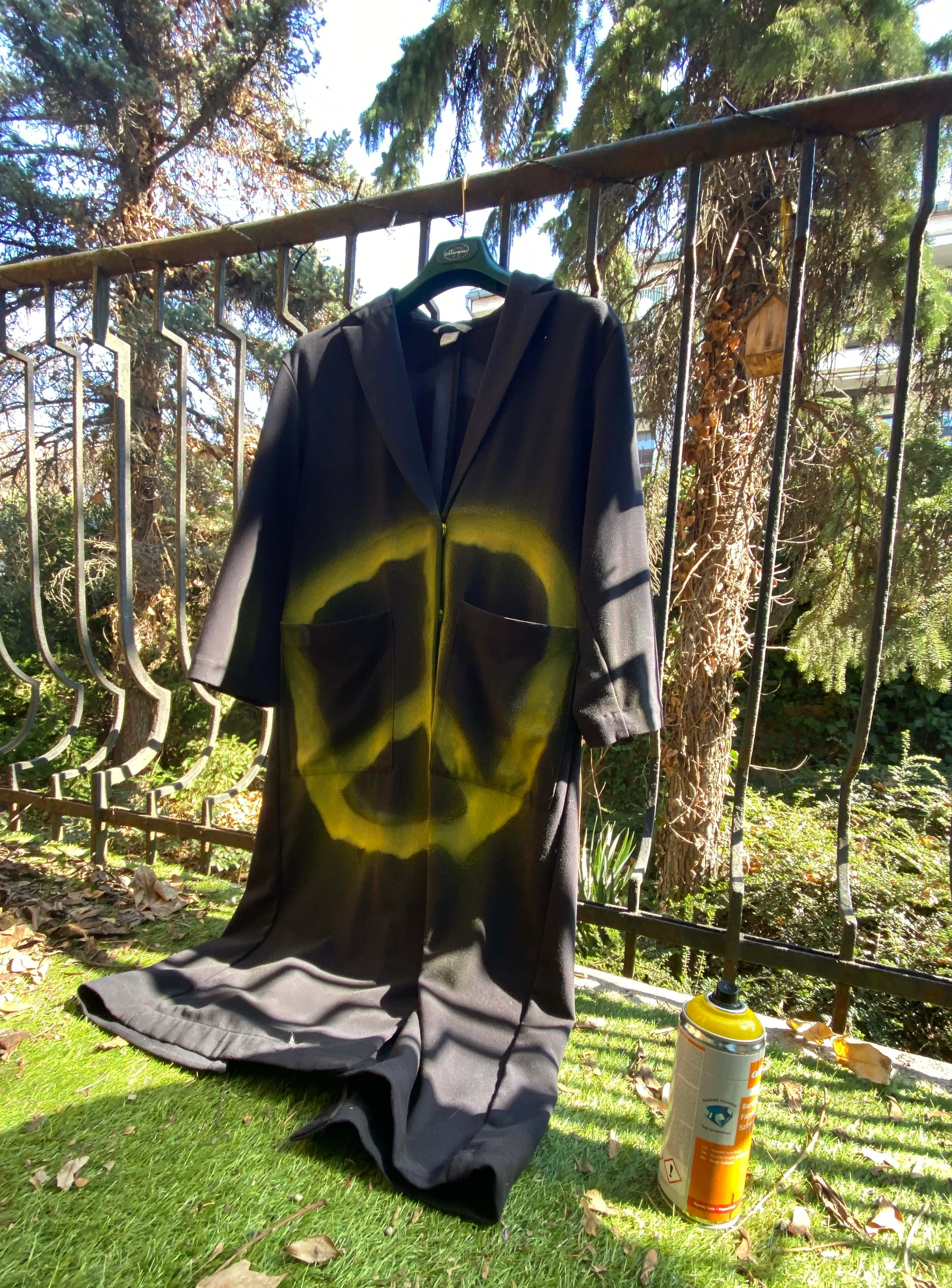 Eke Angéla, akinek a saját életéből készült, fontos társadalmi problémákat feszegető egyszemélyes darabját, az Én, Iphigéniát muszáj megnézned, zseniálisan kombinálta ezt a két fontos mondanivalót, és saját kezűleg készítette el fekete kabátruhájára az ukrán zászló sárga színét idéző békejelet.