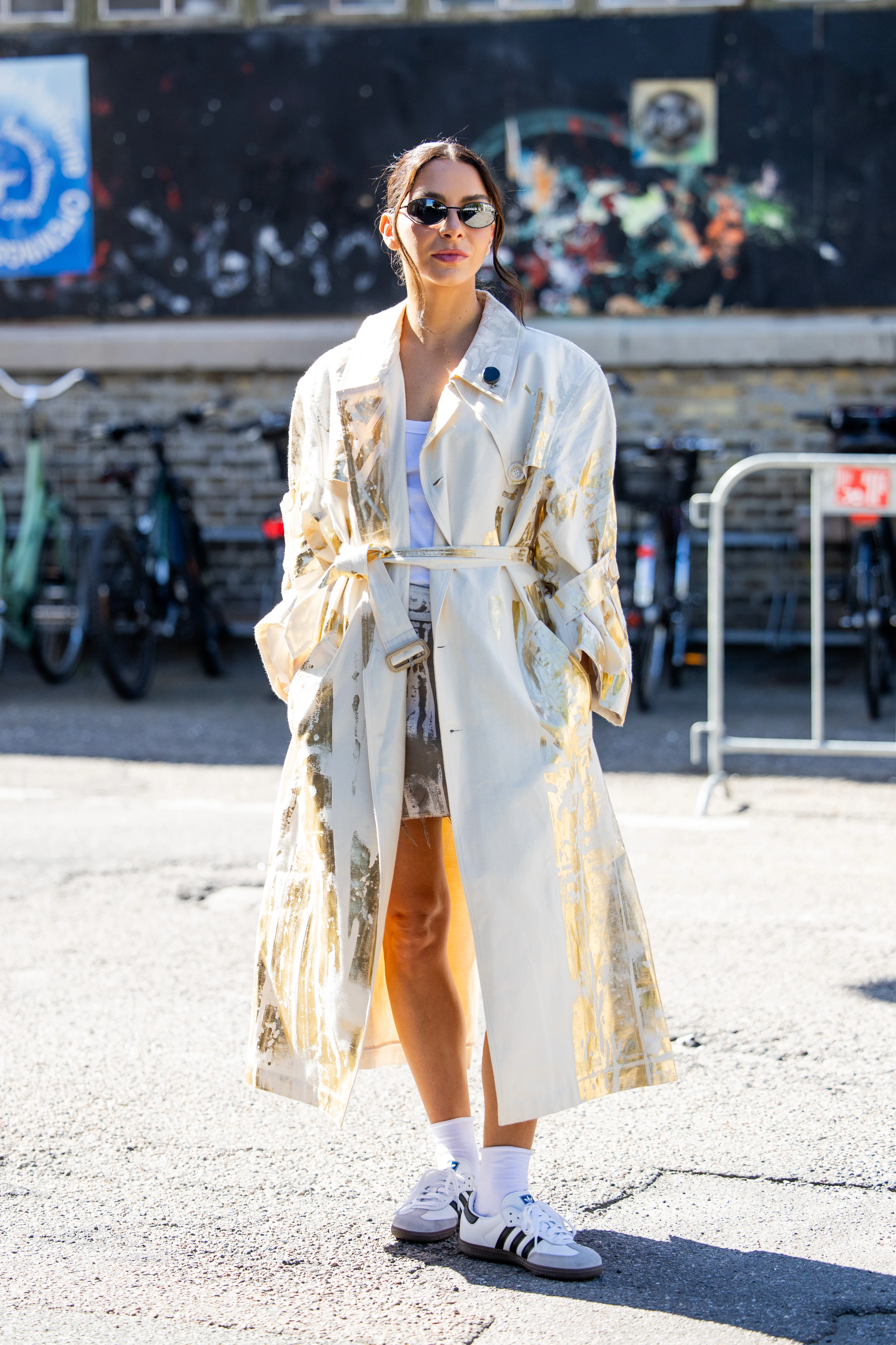 A divathetek alatt számos divatrajongó vonul az utcákon fehér tornacipőben