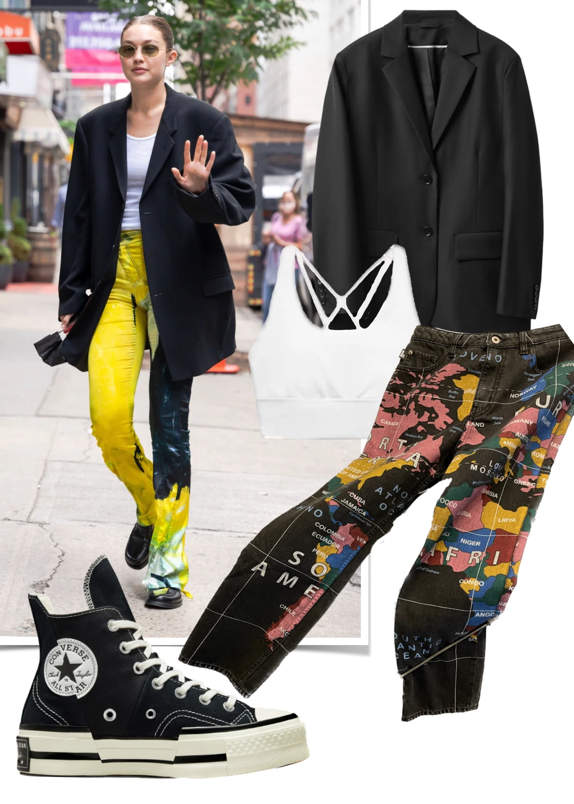 A fekete blézert bátran viselhetjük harsogóbb színű ruhadarabokkal vagy kiegészítőkkel, mint ahogy Gigi hadid is teszi, még akkor is, ha nem akarunk kitűnni a tömegből. A fekete szín visszafogja és harmonikussá teszi az összhatást.