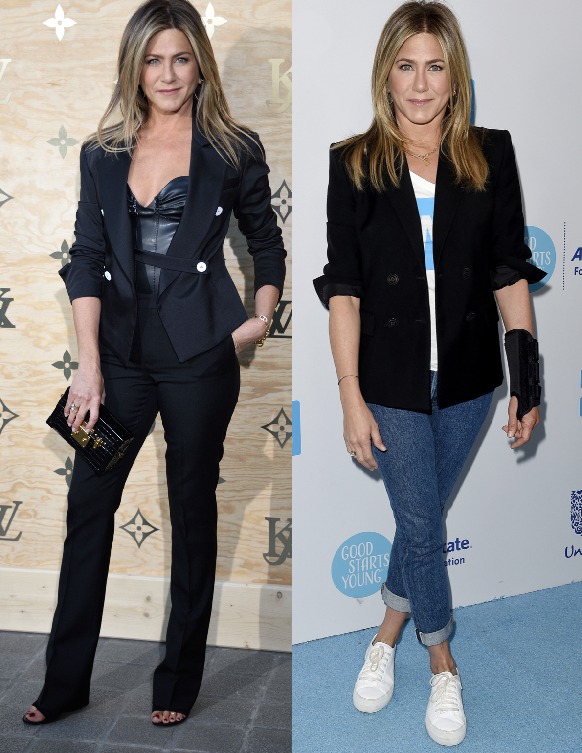 A blézer is Jennifer Aniston egyik nagy kedvence, és gyakran láthatjuk rajta. Blézert használ, hogy a legegyszerűbb párosításokat még kifinomultabbá tegye, és még elegáns ruhák fölött is viseli, amivel emeli a megjelenésének fényét.