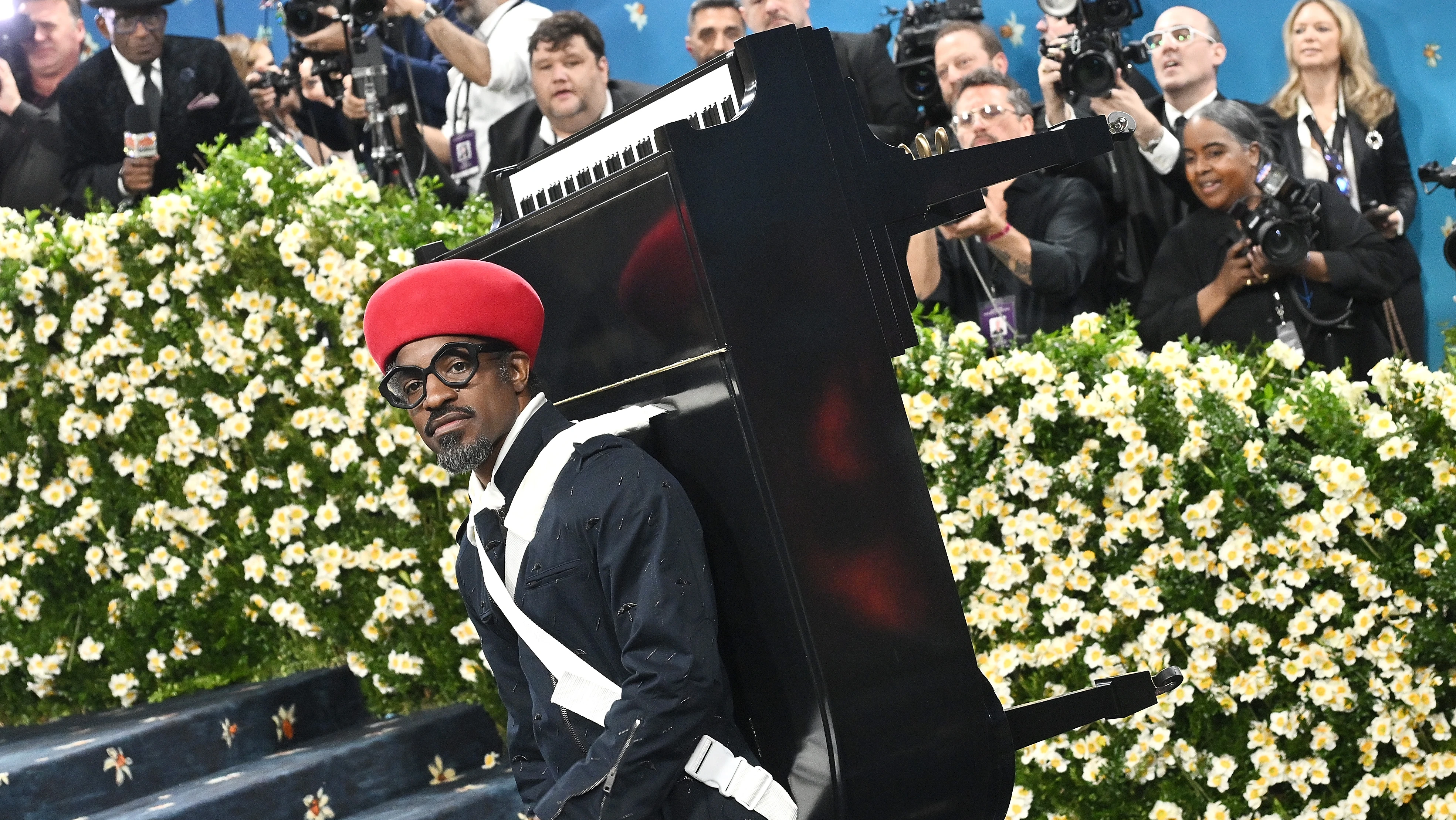És ha már a nem olyan rég világszenzáció lett abból, hogy Jaden Smith egy Abodi várkastéllyal a fején pózolt a vörös szőnyegen, akkor itt a következő tárgyfétis look. André 3000 saját márkája, a Benji Bixby kollaborált a Burberryvel és Law Roach stylisttal. Ebből egy kék, minimalista esernyőkkel és esőcseppekkel hímzett overall lett, amit egy hangverseny zongorával a hátán egészített ki a zenész, aki amúgy épp a „7 piano sketches” című új albumát népszerűsíti. És mi köze van a munkásruhának a dandy stílushoz?