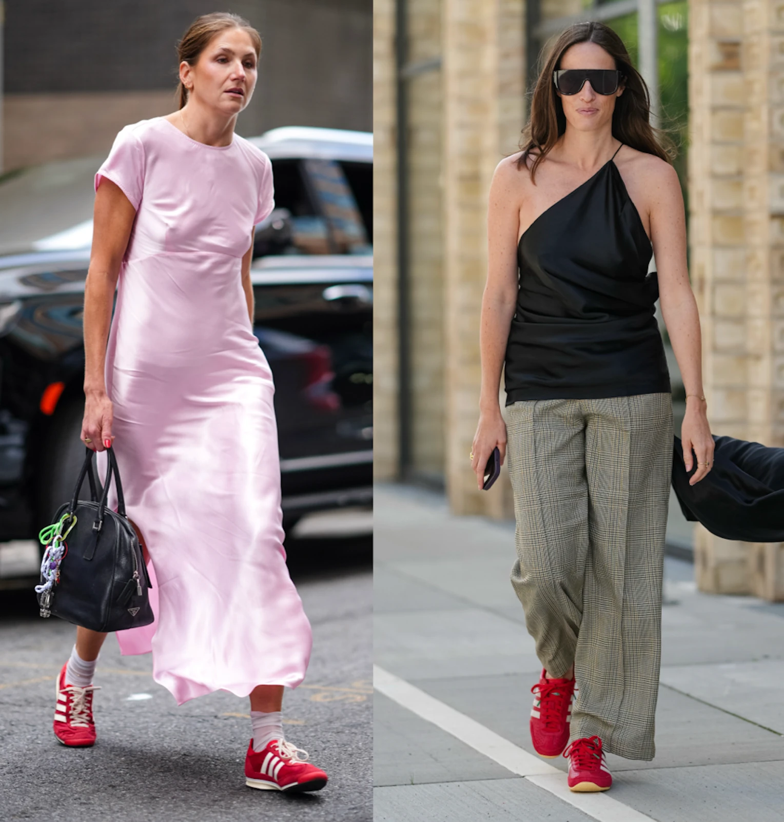 Emily Ratajkowski már több szezonnal ezelőtt elkzedte a piros tornacipő népszerüsítését, mig Gigi Hadid a múlt évben jelent meg egy vibráló Adidas cipőben
