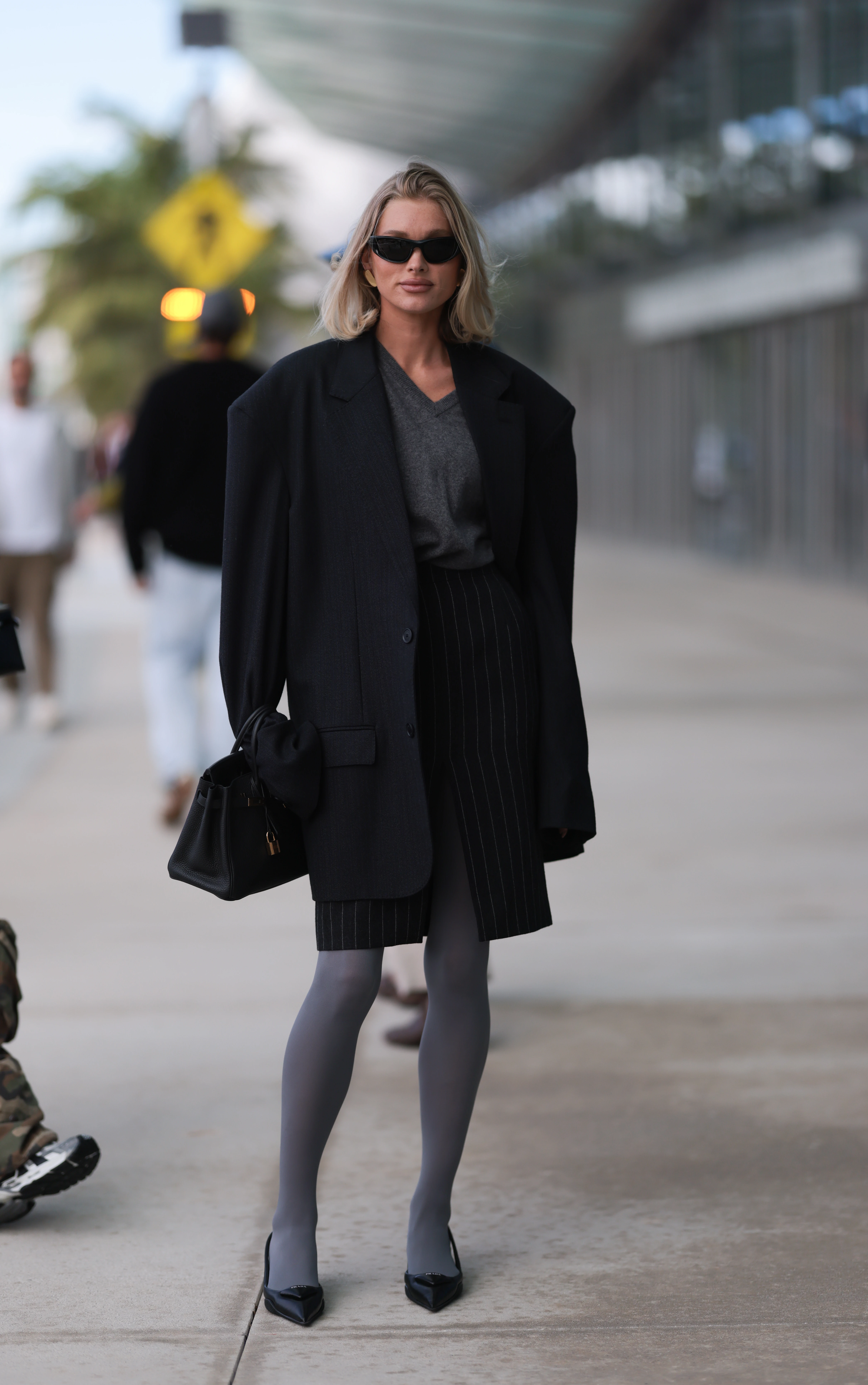 Az utcai stílusban Elsa Hosk modell azon szakértők közé tartozik, aki már kipróbálta a szürke harisnya viselését, és ezt úgy tette, hogy a legegyszerűbb megoldást, a jólszabott kosztümöt viselte vele. A divathét vendégei szerint ez a harisnya egyszerű módja annak, hogy felfrissítsd a tavaszi összeállításokat.
