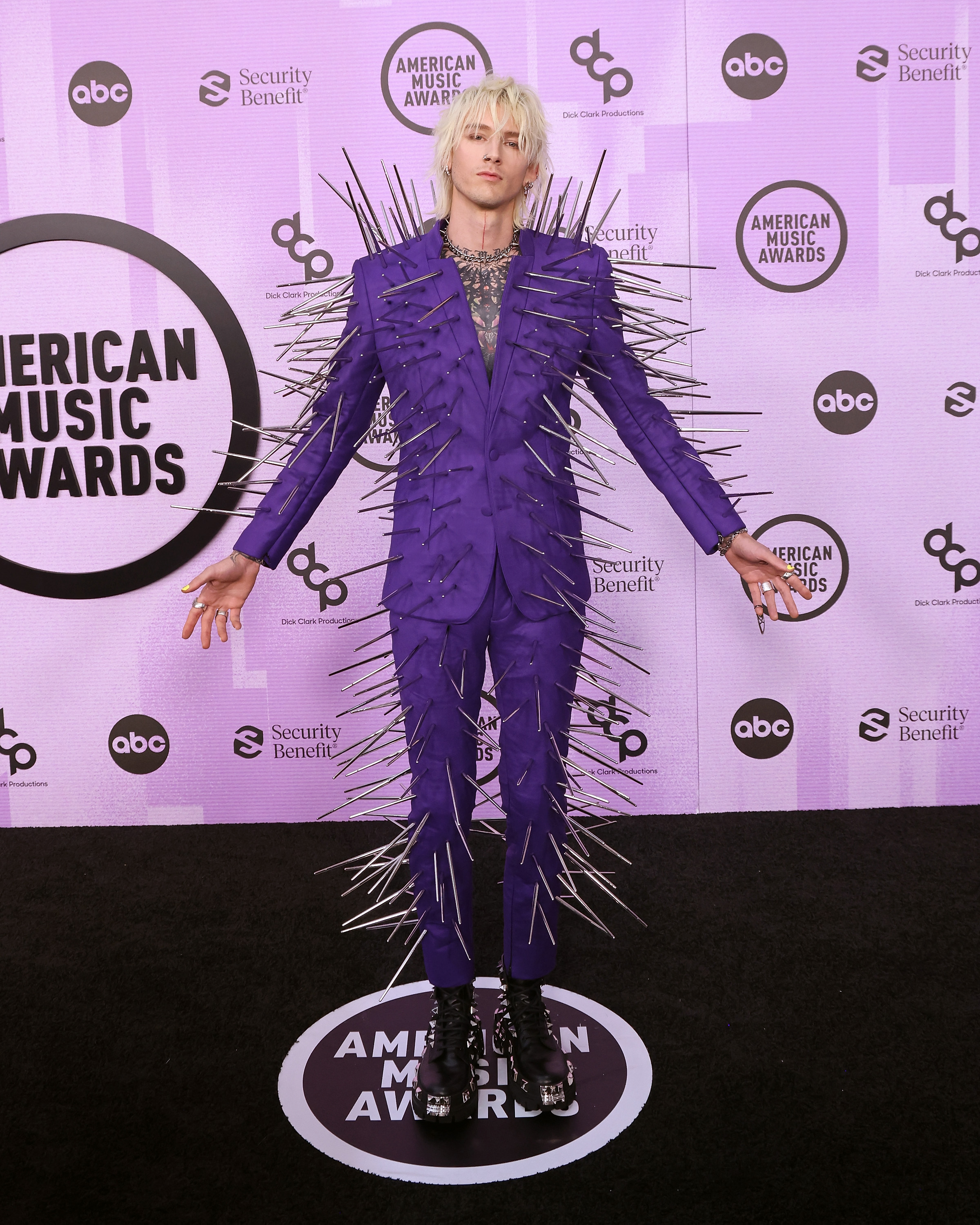 Machine Gun Kelly tüskés szettjében az AMA díjátadó vörös szőnyegén | Fotó: Taylor Hill