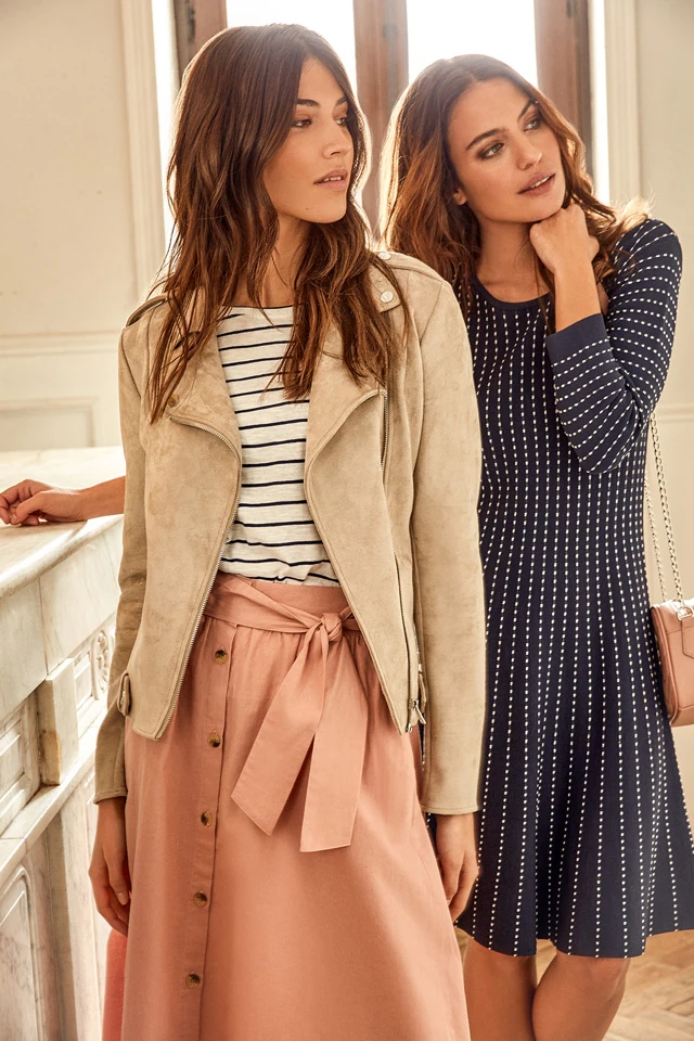 Végre elmúltak a mínuszok, a vastag bundád helyett előveheted a lengébb kabátkádat. Irodai viselethez elegáns megoldás lehet a velúr motorosdzseki vagy a balonkabát, amiket bátran hordhatunk nadrággal vagy szoknyával. A pasztell árnyalatai idén is hódítanak, a rózsaszínnel, a világoskékkel és az ekrüttel nem nyúlhatsz mellé. Tökéletes viselet akár munkahelyre, vagy egy szabadtéri megbeszélésére.