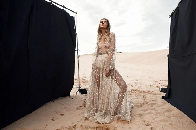 Oké, ennél gyönyörűbb ruhát nem tudunk már elképzelni. Aprólékosan kidolgozott felső rész, áttetsző, minimál maxiszoknya. Ezzel nem nyúlhatsz mellé.