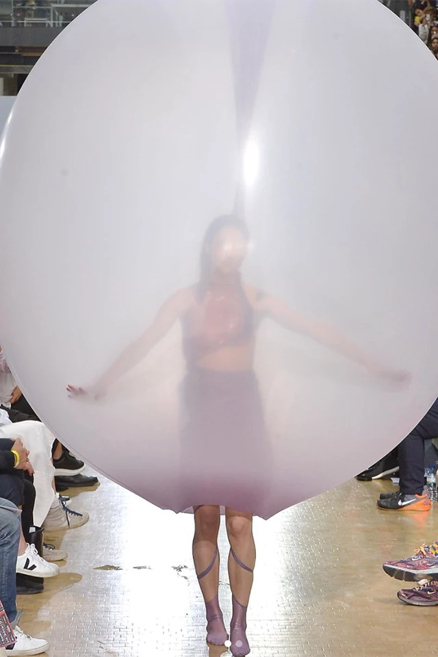 Biztosan te is találkoztál már Instagramon azokkal a bizonyos lufiruhákkal, amelyek a kifutón pukkadnak ki és csavarodnak rá a modellekre. A tervező performansz-bemutatója természetesen az egész divatvilág figyelmét magára vonta, és az angol Vogue magazin meg is kereste a tervezőt, hogy meséljen a különleges kollekcióról.