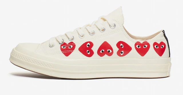 A sokadik közös Chuck Taylor érkezett meg most a két cégtől, ahol ezúttal Comme des Garcons nagyon jellemző szívmotívum kapja a központi szerepet. A mindössze három színváltozatban kapható Converse x Comme des Garcons Play névre keresztelt kollekcióban azért a japán márka jól ismert pöttyös díszítése is megjelenik. Igazából bármelyiket elfogadnánk!