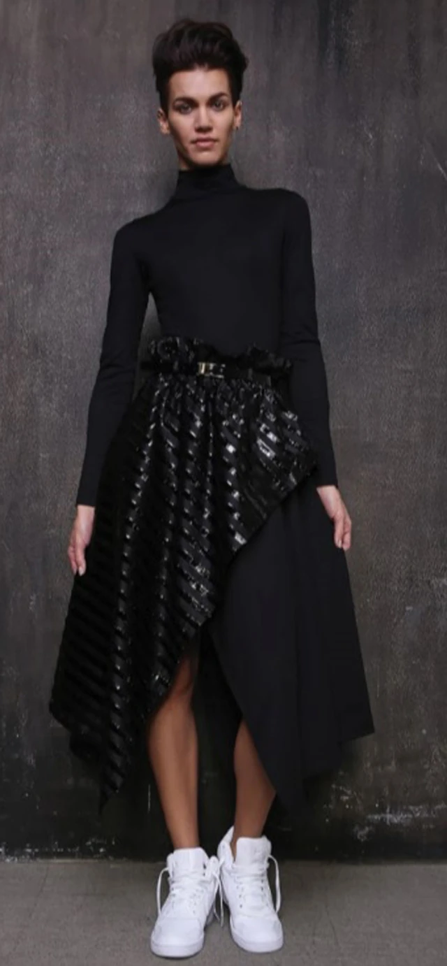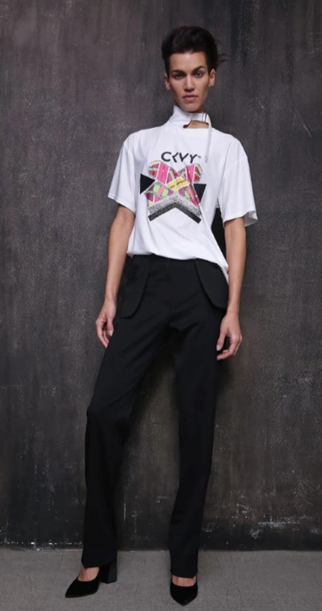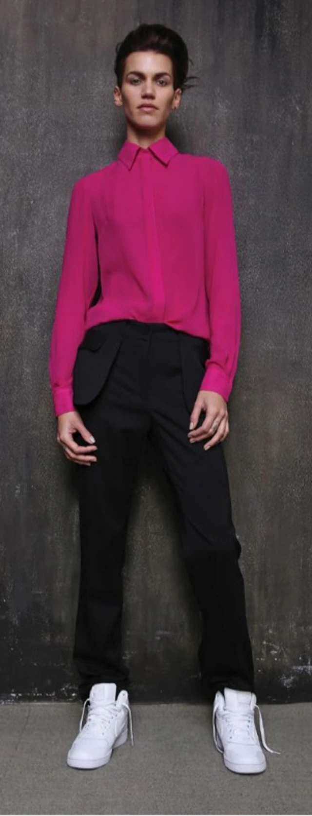 A laza, oversize kialakítások keverednek a márkára jellemző nőies elemekkel, az ejtett vállakkal és flitteres-glitteres kiegészítőkkel. Az öltözéksorozat kiemelkedő darabjai a télikabátok, matt, illetve fényes steppelt orkán anyagból, de megtalálhatóak benne a klasszikus gyapjúszövet nadrágok, ruhák a kényelmes jersey pólók és selyemblúzok is.