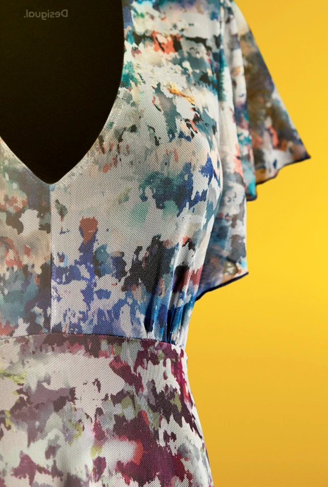 A kamuflázzsal való ötletelés közben a Desigual úgy döntött, hogy egy teljesen új világba viszi el a stílust: a tüllbe. Nőies V-nyak - ez a ruha úgy siklik a testen, mint egy póló: a kényelmet és a rugalmasságot is megtestesíti. Gyakorlatiasság, szabadság és mozgás.
