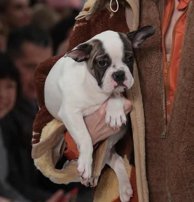 Úgy tűnik a stratégia nem meglepő módon bevált, így a márka a kifutón is bevetette a titkos fegyvert: az édes, unatkozó, bágyadt kutyust!