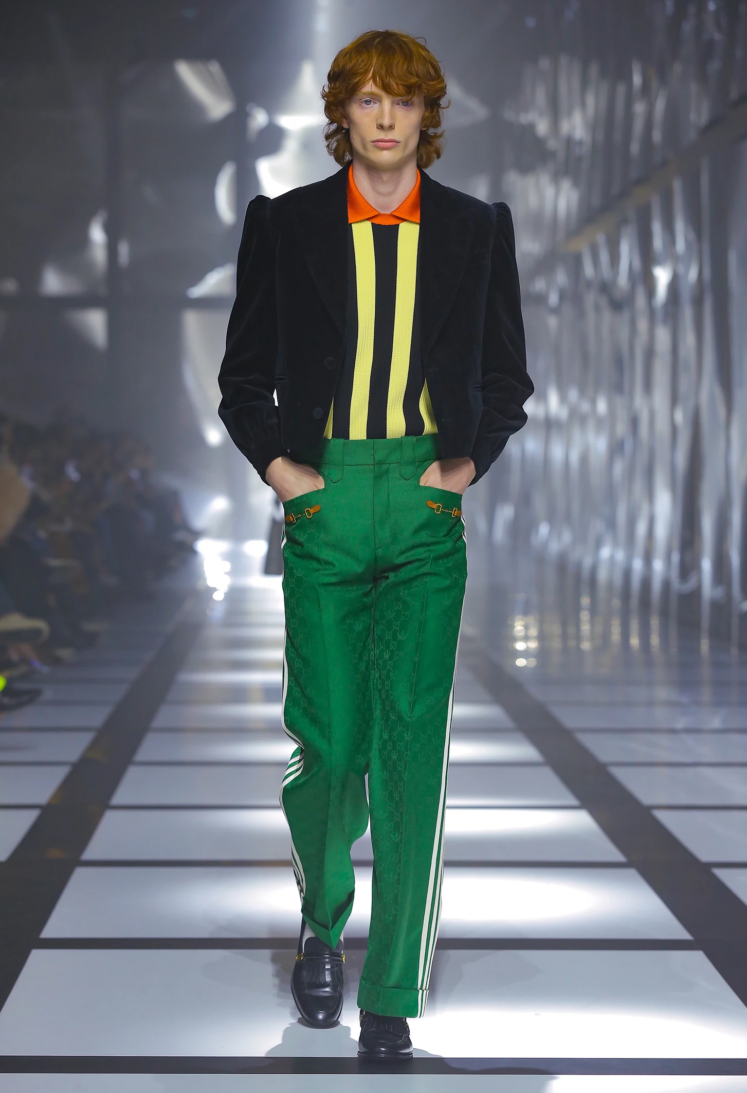 Az Adidas kollaboráció szintén Alessandro saját tapasztalataiból érkezett. A sportmárka a ’70-’80-as évek sportdivatját erősen befolyásolta európai származásának és látásmódjának köszönhetően. A ’80-as évek divatja és az Adidas ikonikus stílusának ötvözéséből született meg a Gucci féle Adidas kollekció, amely a két márka rendkívüli befolyását a divatvilágra is hivatott kiemelni. Szinte minden felvonuló modellen látható az Adidas felismerhető 3 csíkos márkajelzése, illetve az Adidas és Gucci logók keveredése is. A színekről nem is beszélve! A két márka jellemző színei tökéletesen keverednek és harmonizálnak egymással, amely látványos szetteket eredményezett a kifutón.
