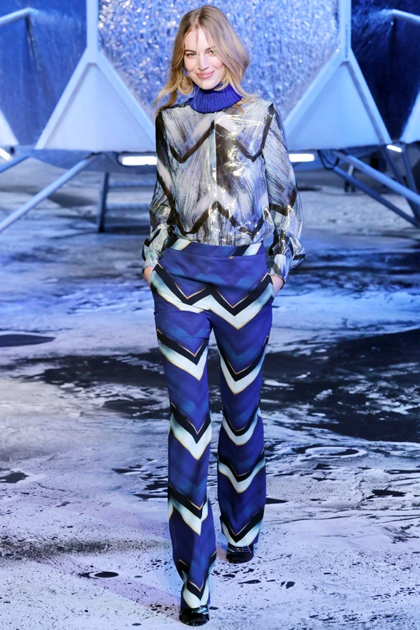 A bemutatót nem más, mint maga Caroline de Maigre nyitotta, a korábban elképesztően sikeres francia modell, nemrég ünnepelte a 40. születésnapját, szinte ajándék volt, hogy visszacsábították a kifutóra. A stílusikon és zenei producer, első holdra szállóként egy ezüstszínű bőr űrruhában sétált végig a kifutón, majd beszállt egy űrkapszulába, ahol élő DJ műsorának indításával aktiválta a show-t.
