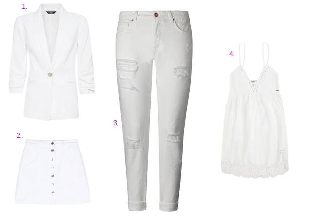Akár tetőtől-talpig hófehérbe burkolózhatunk a meleg hónapokban, hisz ez már rég nem csak a menyasszonyok kiváltsága. A komplett fehér szettünket nappalra világosbarna kiegészítőkkel tehetjük tökéletessé, ha pedig esti partira vagyunk hivatalosak passzintsunk fémes színű szandált és arany vagy ezüst ékszereket az összeállításhoz.