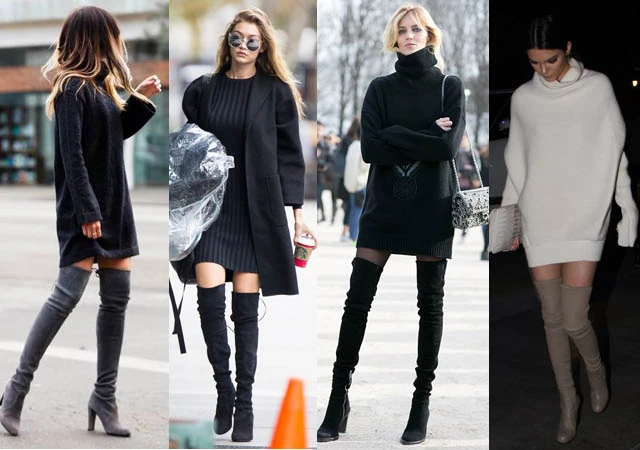 Olivia Palermo, Anja Rubik, Hailey Baldwin, Gigi Hadid és Kendall Jenner is szivesen viseli ezt a kombinációt. Ha elég hosszú a pulcsid, elég alá egy leggings vagy egy vastag harisnya. Ha picit rövidebb fazonú a felsőd, akkor húzz alá egy szűk farmert, amihez pompásan mutat a combcsizma.