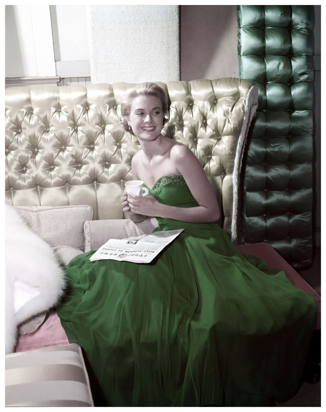 Kelly főleg a lágy pasztellszíneket szerette, az erősebb színek közül pedig a reményt, szerencsét és ifjúságot szimbolizáló zöld – smaragd, lime, jade - volt a kedvence. A monacói palotában Grace szerencsehozó zöldre festette a szobát, ahol Caroline lánya született.
