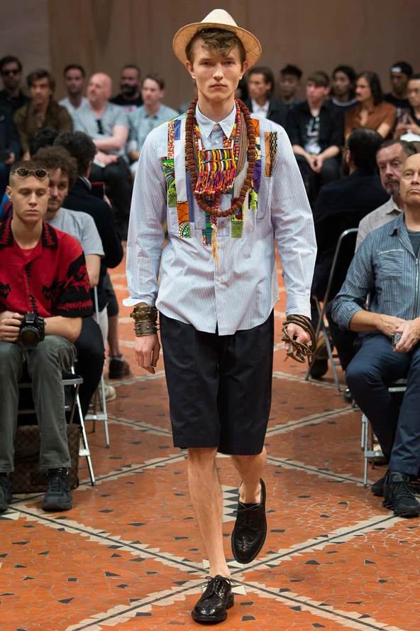 Junya Watanabe a hétvégén bemutatott férfikollekciójában megdöbbentő ruhadarabokat párosított össze: a modellek inget, blézert és csokornyakkendőt viseltek tradicionális afrikai láncokkal és batikolt szövetekkel ötvözve. A show másik furcsasága a modellek kiválasztása volt; annak ellenére, hogy afrikai darabok kerültek bemutatásra, csakis fehér bőrű férfiak járták végig a kifutókat.