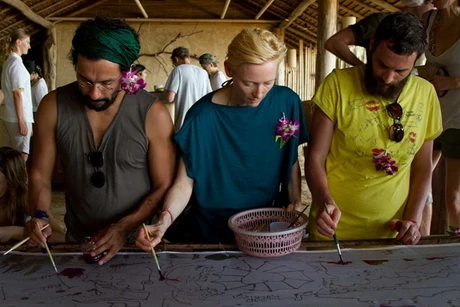 A színésznő egy igazán különleges alkalommal vette fel a tengerzöld darabot: a Thaiföld egyik szigetén Koh Yao Noi-on rendezett Film On The Rocks fesztiválon. A különleges atmoszférájú rendezvény meghívottai voltak Ryan McGinley, Haider Ackermann, Jefferson Hack és Chloe Sevigny, Tilda Swinton pedig a fesztivál főkurátoraként tündökölt.