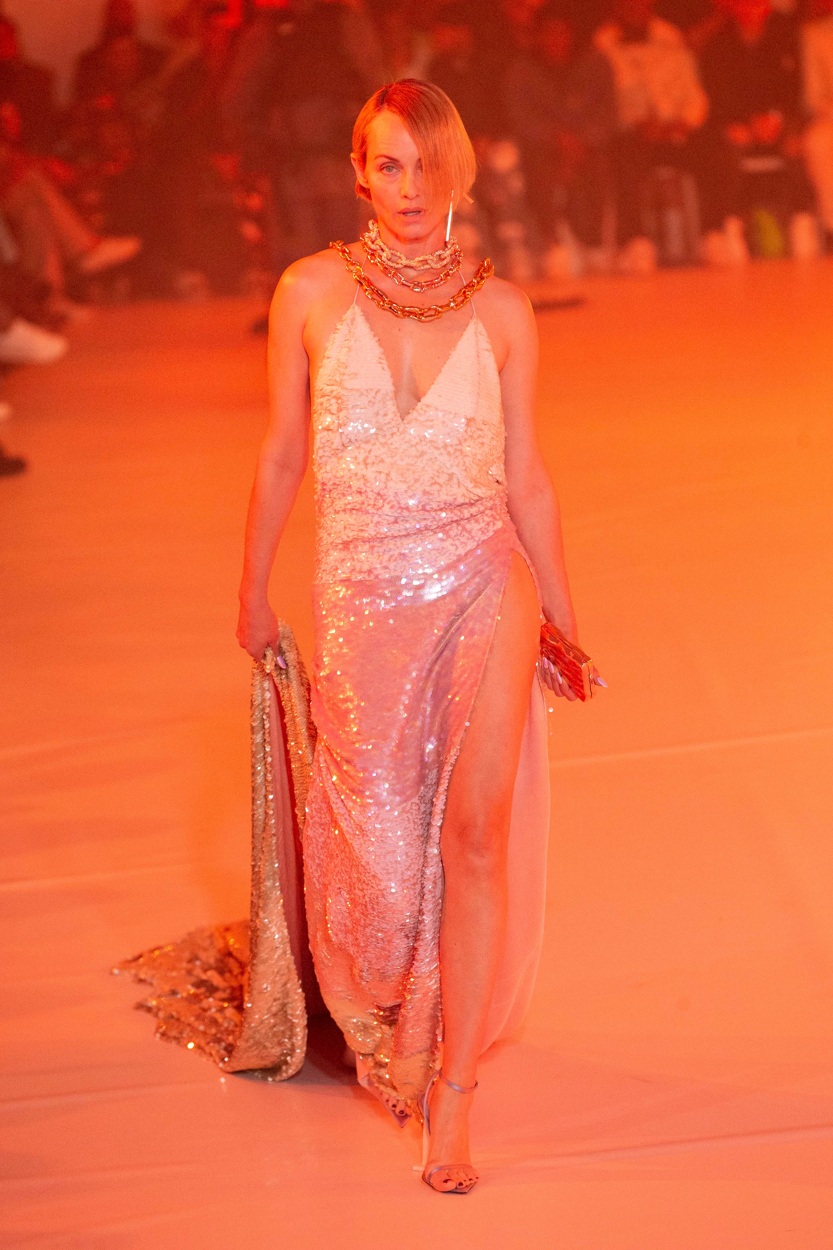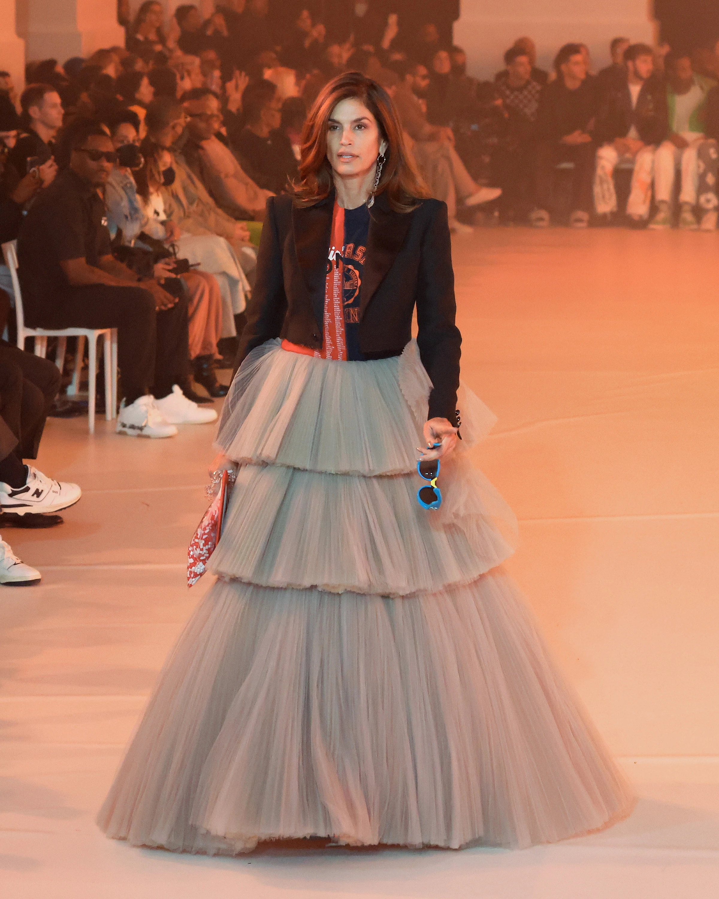A kifutó “fedélzete” sem volt unalmas. A bemutatót Naomi Campbell nyitotta, aki korábban, Abloh utolsó Louis Vuitton férfi kollekció bemutatóján is vonult. Ezen kívül bemutatott még Cindy Crawford, Helena Christensen és Amber Valetta, csak hogy párat említsünk a korábbi szupermodell generációból.
