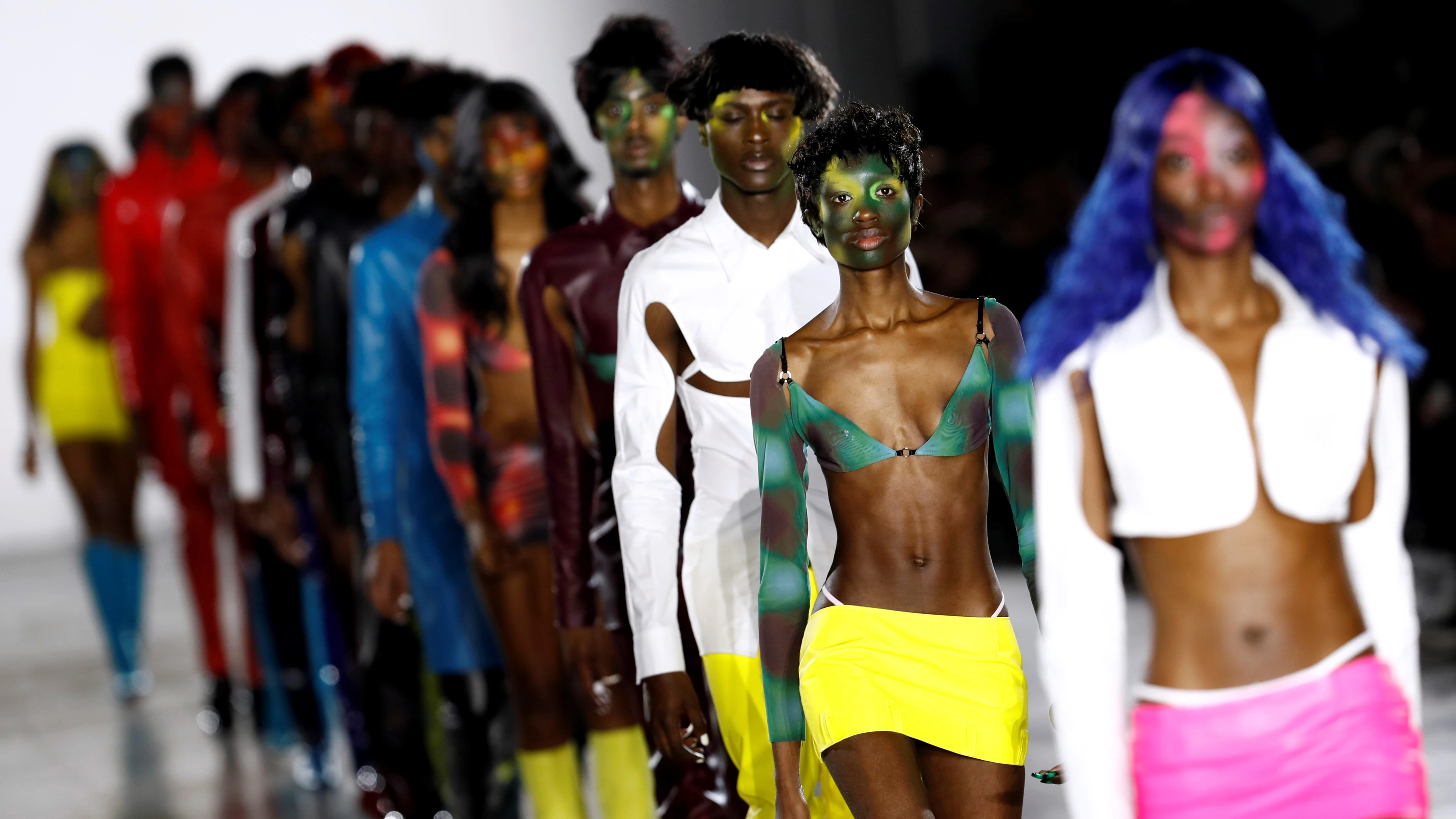 „Gyakorlatilag azt viseled, amiben szeretnéd elérni, hogy valaki szexeljen veled” – nyilatkozta a show backstage-ében Mowalola Ogunlesi. Felvetése alapján nem meglepő a ruhákat átható túlcsorduló energia és friss magabiztosság, amik egyszerre modernek és szexik. A kollekció szinte kivétel nélkül élénk színű bőr darabokból áll, melyekre rafinált kivágások kerültek.