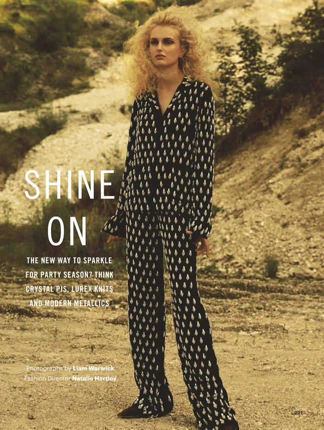 Liam Warwick fotóin szőke büszkeségünk Armani, Dior, Dolce & Gabbana, Louis Vuitton, Miu Miu és Valentino segítségével prezentálja a téli szezon újhullámos csillogását, kristályberakásos pizsamában és lurexszállal szőtt felsőkben. Aliz most azt is elárulja, pontosan hogyan is készült a festői környezetben elhelyezett divatanyag: