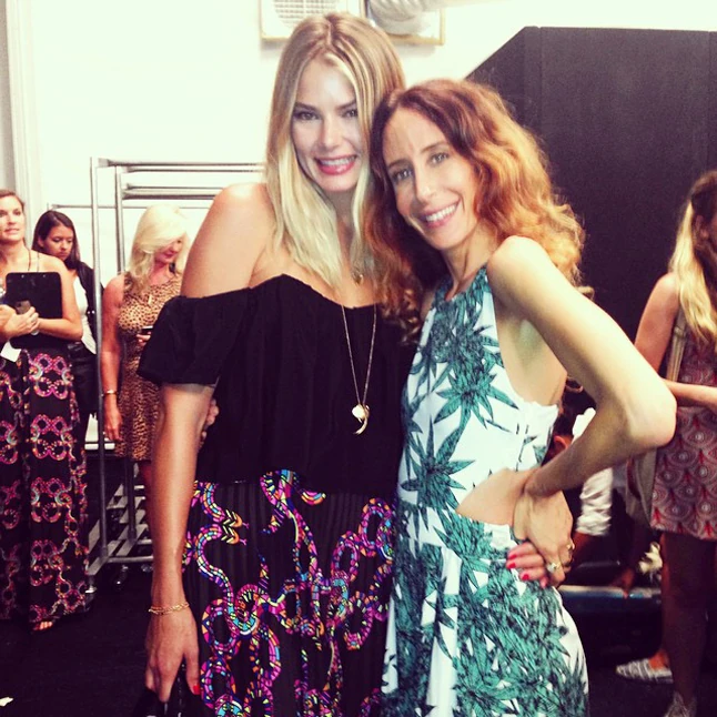Szerencsére a kifutón ennél látványosabb, és főleg színesebb volt a kínálat. Mara Hoffman bemutatóján, ahol a GLAMOUR is járt, persze másra nem is számíthattunk, hiszen a tervezőnő még 2010-ben egészen extrém színes, afrikai törzsi mintákkal díszített kollekcióval debütált. Az évek során egyre letisztultabbá váló szín- és mintahasználatnak köszönhetően 2015-re már az afrikai és orientális hatás már csak nyomokban lelhető fel a ruhákon, viszont még mindig a saját, most már inkább geometrikus irányba elmozduló printek adják a ruhák karakterét. A nyári kollekcióból természetesen nem hiányozhattak a fürdőruhák sem, hiszen 2008 óta immár önálló brandként is megjelent, és azonnal igencsak kedveltté vált a Mara Hoffman név. A Sunrisers névre keresztelt kollekció alapszíne a fehér volt, amelyet fakó színű geometriai printek ellensúlyoztak. Olyan volt, mintha egy régi, a 70-es évekből származó kissé kifakult tengerparti fotóról léptek volna le a modellek, hogy erősebb legyen a hatás, a show zenei mixében felbukkant például Jim Morrison hangja is. Nem ő volt az egyetlen Morrison a bemutatón, hiszen a fő helyen, a Dr. House gyönyörű szőkesége, Jennifer Morrison foglalt helyet az első sorban. A színésznő a show előtt készségesen pózolt a kameráknak, amikor sikerült közelebb férkőznünk hozzá, akkor éppen arról beszélt egy riporternek, hogy a húga, Julie fedezte fel először a Mara Hoffman márkát, és azóta ő is lelkes híve tervezőnek.