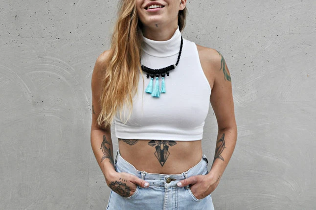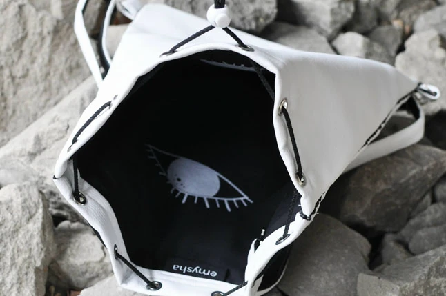 A kollekció a márka stílusjegyeit és hangulatát mutatja be: városi, energikus, bringás, csajos, praktikus, cuki, játékos és átgondolt. Az az alapelvem, hogy a funkcionalitás találkozzon az esztétikával. Adott egy hátizsák, amit szívesen hordasz bringázáshoz is, ez egy abszolút fontos szempont nálam, és ha hosszúra nyúlik a nap, még a buli szettedet is feldobja. Ha megunod, lecserélheted a pántjait, belenézel, és fehér szemek néznek vissza rád, az oldalait pedig varrás helyett gyöngyök kötik össze.