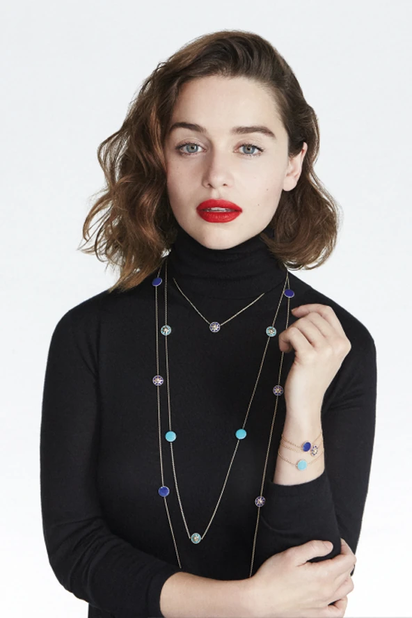 Emilia Clarke barna loknikkal, és visszafogott sminkben pózolt a Rose des Vents ékszerkollekció kampányképeihez Patrick Demarchelier kamerája előtt.
