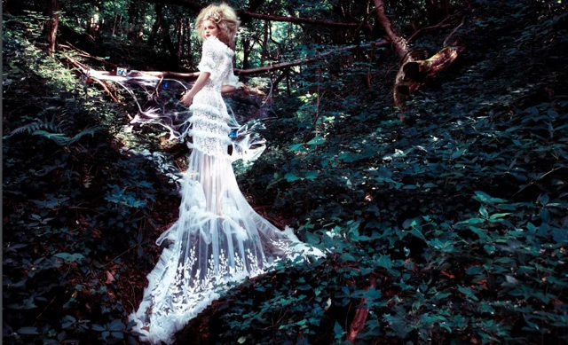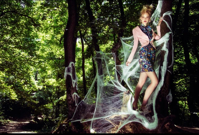 A modell haja emlékeztetett a begubózásra, valamint a képek többségén mellette húzódó elhagyott gubó szálak. Még kapcsolódik a múltjához, de készenáll az új életre.