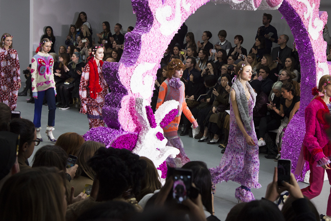 Az Ashish idén sem okozott csalódást, az elképesztő bemutatón felvonuló modellek óriási színes-csillámos parókákat viseltek a szintén flitteres ruhákhoz és kiegészítőkhöz passzoló színben, míg a fináléban összeállt a tervezők által megálmodott fenséges színpaletta. Kell ennél több?