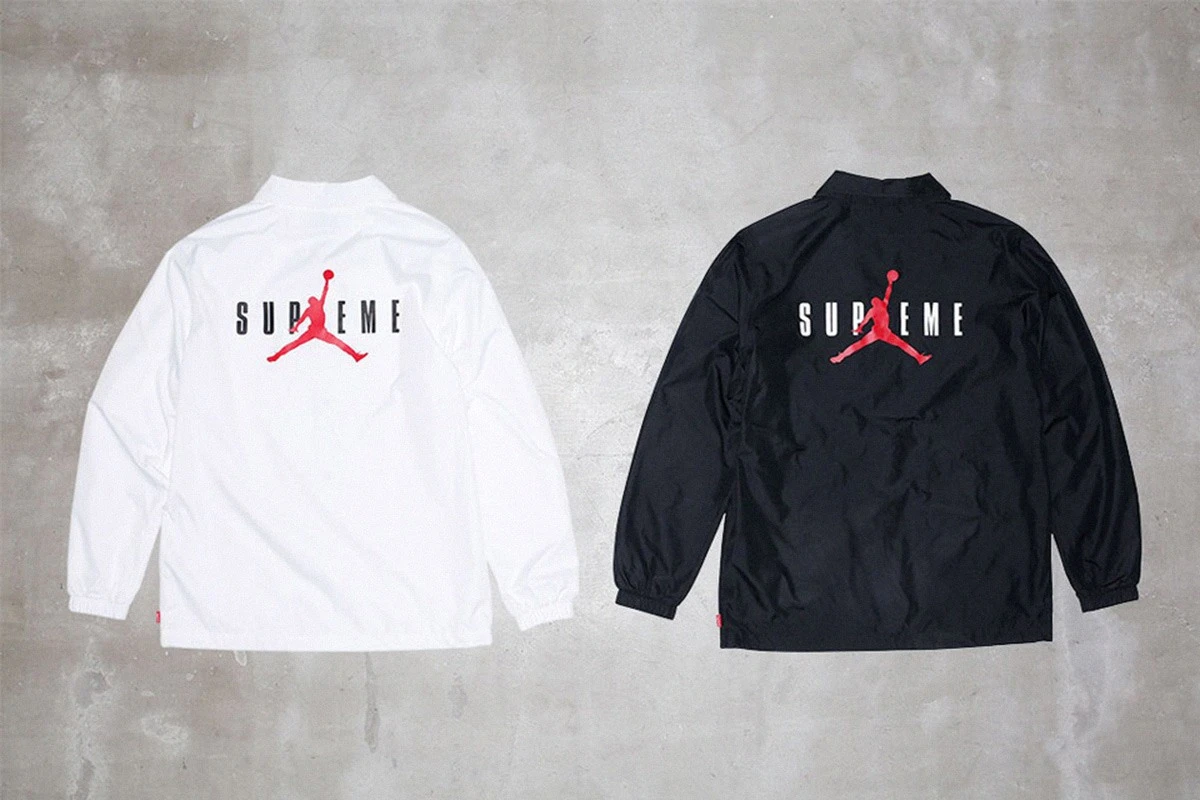 A Michael Jordan fémjelezte brand és a Supreme közös kollekciójának lógójában a klasszikus Jumpman figurát ötvözték a Supreme felirattal.