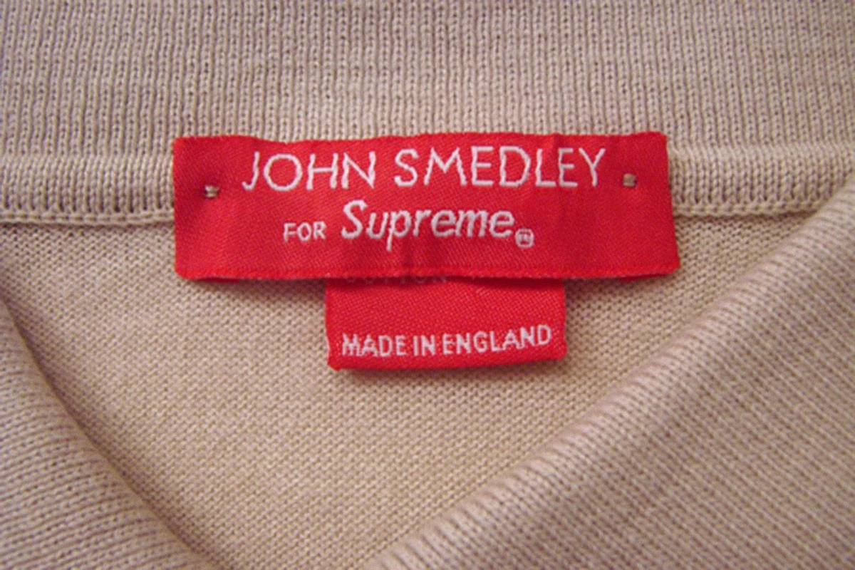 A legegyszerűbb dizájnja a brit kötöttáru márkával történt fúziónak volt. Csak a címkén volt látható egy "John Smedley" for Supreme lógó.