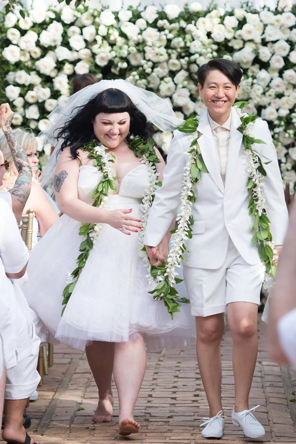 Beth Ditto, a The Gossip énekesnője hozzáment barátnőjéhez, Kristin Ogatához, akivel már régóta jártak. Az esküvőt a Hawaii-szigeteken, pontosabban Mauin tartották. A ceremóniáról többet nem tudunk, de annyi bizonyos, hogy a menyasszony egy Jean-Paul Gaultier ruhában mondta ki a boldogító igent párjának, és mindezt mezítláb tette.