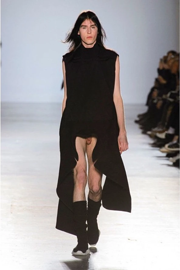 Minden évben jut bőven botrányokból a kifutóra. Általában azonban inkább a női kollekciók körül alakulnak ki a legemlékezetesebb sztorik. Az amerikai Rick Owens viszont úgy döntött, változtat ezen a tendencián.