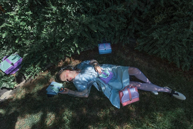 Ez a sütis vonal azonnal meg is szabta az új táskák anyaghasználatát: Alma egy könnyedebb, ám kifinomultabb színvilágban kezdett el gondolkodni. A kollekció karakterét a néhol csillogós pasztelszínek határozzák meg. Ugyanakkor azokra a hölgyekre is gondolt, akiknek ez túl merész választás lenne, vagy egyszerűen csak nem illene a ruhatárukba, ezért készült fehér, ezüst és arany kombináció is, illetve egy nagyon izgalmas fekete geometrikus minta, a sötétebb árnyalatok kedvelőinek.