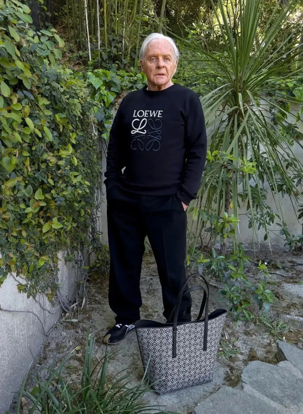 A 84 éves színész a Loewe divatmárka új, 2022-es pre-fall (őszi bevezető) kampányának sztárja, és a dizájnermárka két különböző öltözékében pózol. A Juergen Teller fotós által készített napsütéses, szabadtéri felvételek egyikén Hopkins egy logós pulóverben (690 dollár) pózol, fekete nadrággal és tornacipővel kombinálva.