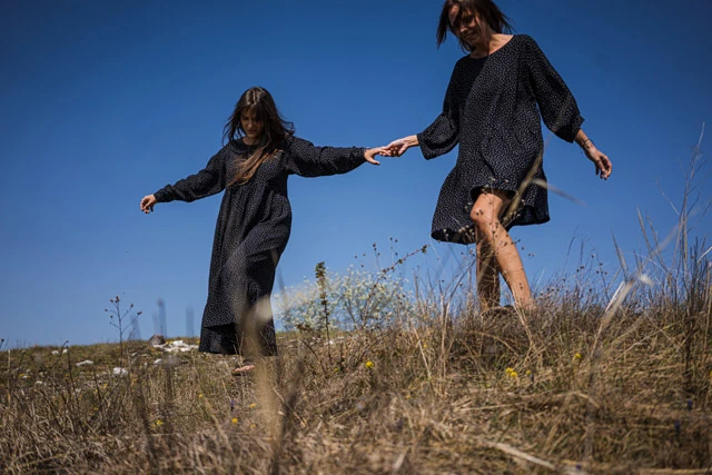 ˝Az összes ruhánkat anyu tervezi meg és varrja a saját kezével az otthoni manufaktúránkban. Csakis kizárólag organikus anyagokkal dolgozunk, és az összes ruhánk egyedileg, személyre szabottan készül el. Darabjainkat örökre tervezzük a vásárlóink számára.˝ - mesélte Aliz, amikor a munkafolyamatról kérdeztem
