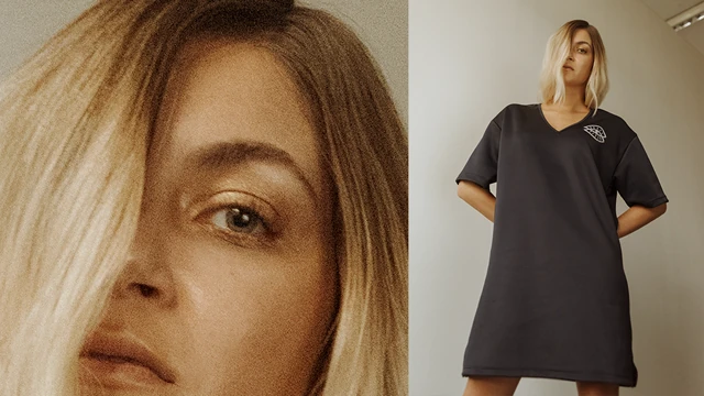 A The Alika egy neoprén hatású tunika, az alaktalan szabás szöges ellentéte mindennek, amit eddig a nő ruháikon keresztül láthattunk. A SLEEPWITHONEEYEOPEN minta a mellét ezüstszínű flitter hímzés díszíti. Ez a szemminta jelenik meg a pólókon és az új pulóveren is. A mintát az Atelier Kiss art direktor párosa készítette, ugyanaz a csapat, amelynek egyik fele Kiss Máté, az AARION társalapítója és az arculat kitalálója.