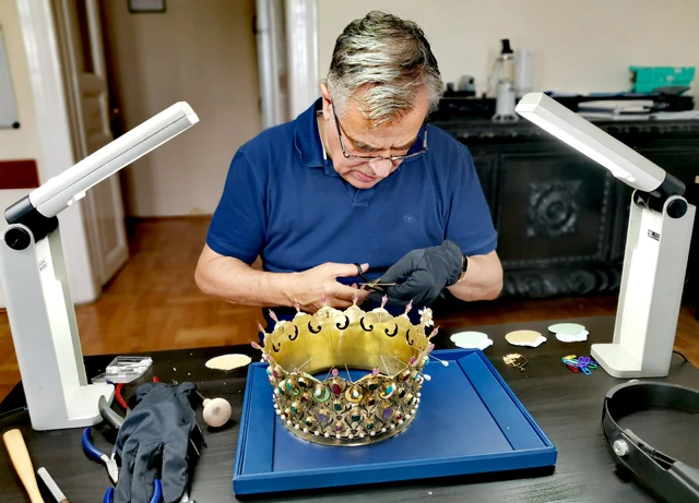 monstrancia tetején a Mátyás templom gyűjteményében. A műhely falán mindig ott lógott a József Attila idézet, hogy dolgozni csak pontosan,