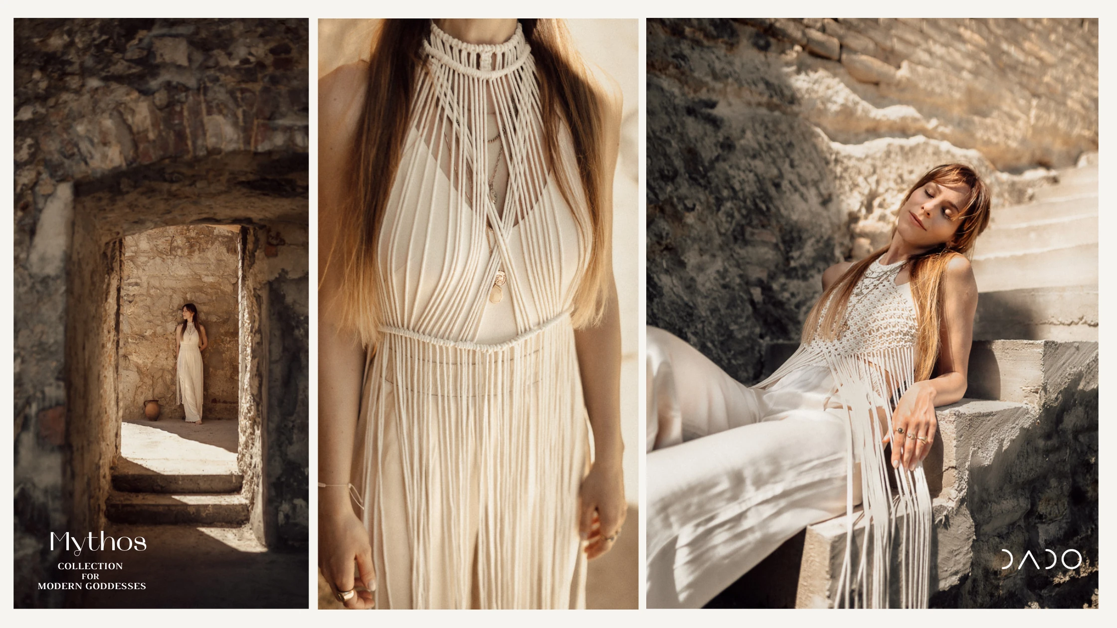 A tervező akkor még táskák, karkötők, övek és home dekor készítésével foglalkozott, most viszont egy teljesen új irány felé fordult és megalkotta a DADO első makramézott ruhakollekcióját, amely a MYTHOS nevet kapta!