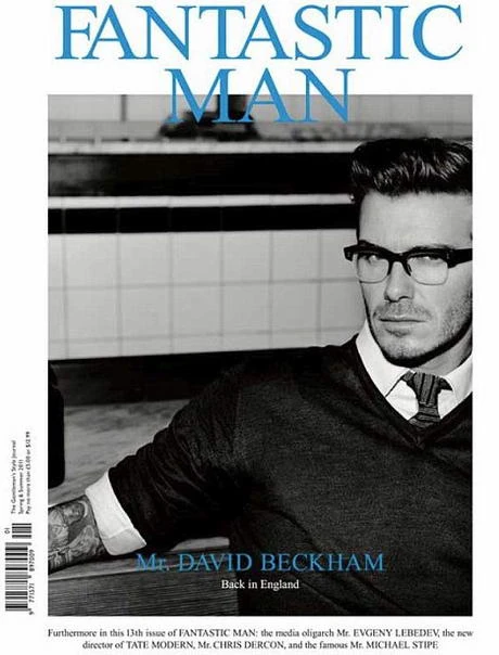 A Fantastic Man magazinnál viszont az Angliába visszatérő David Beckham lett a címlapfiú, aki sokat változott, előnyére az évek során. A valóságos divatikonná fejlődő Beckham ma már cseppet sem emlékeztet egy focistára. A szintén monokróm címlapon igazi okostojásnak tűnik, akár azt is elhinnénk, hogy a Booker-díj következő várományosa került a borítóra.