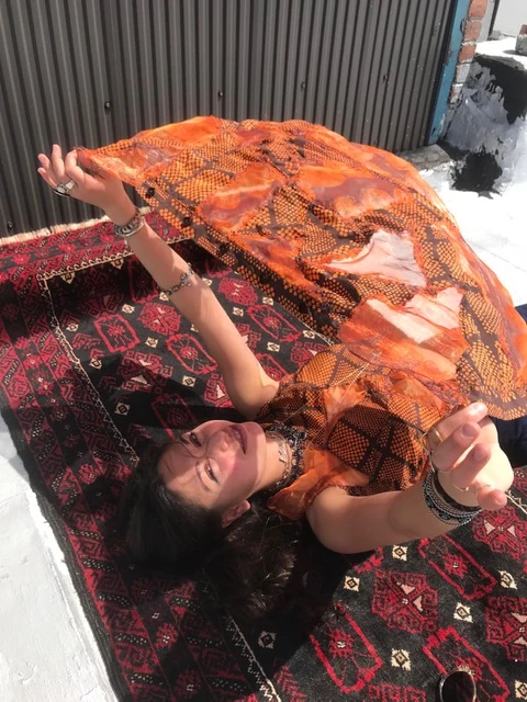 Az én márkám a fenntarthatóság elveinek teljesen megfelel. Brooklyni stúdiómban mindent saját magam készítek, főleg természetes textileket használok, és maradék anyagokkal, vintage bútorszövetekkel, valamint újrahasznosított darabokkal egyaránt dolgozok. Felhalmozó típus vagyok, ezért nehezen válok meg még a legkisebb anyagdarabtól is, főleg, ha én festettem vagy nyomtattam rá. Úgyhogy végül ezek lettek a védjegyeim. Hogy fel tudjak használni minden anyagmaradékot, elkezdtem lakásdíszeket is tervezni, így most ezek az anyagok átlátszó organza párnahuzatokban élik második életüket.