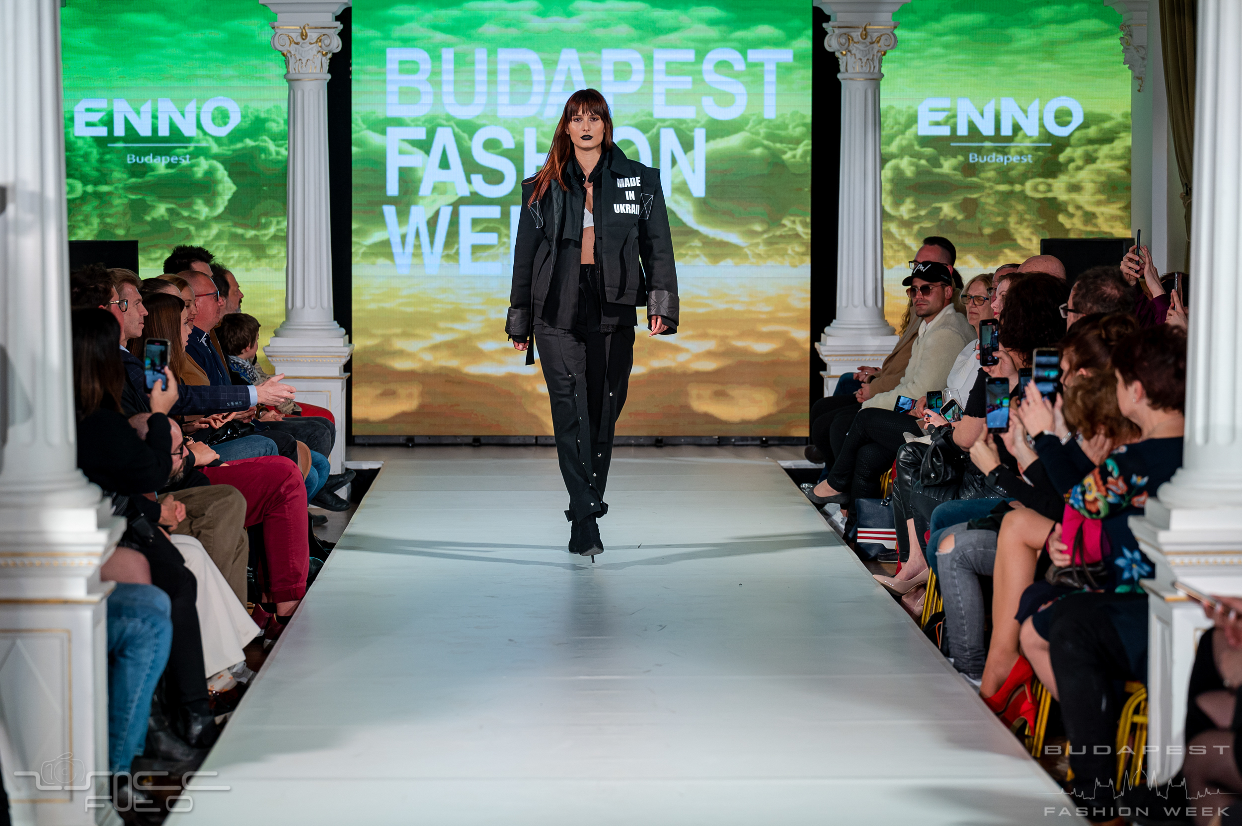A félelmet szimbolizáló viharos esővel és egy háborús dallal indult az Enno bemutatója a 24. Budapest Fashion Week első napján. Az Ukrajnából nemrég menekült tervező maga is megjárta a háborús zónát, ahol személyesen átélte a tragikus pillanatokat. Azonban minden viharos éjszakát előbb-utóbb egy napfényes reggel követ, amikor csend van, csak a madarak csiripelnek. Így az elsőként felvonuló modellek is egy ehhez hasonló nyugodt atmoszférában vonultak, a zene pedig fokozatosan vidámsággal töltötte meg a Városliget Café dísztermét – a bemutató végén még a közönség soraiból is csatlakoztak a kifutón kialakult partihoz.