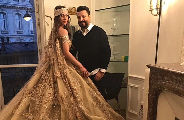 A menyasszony egy káprázatos arany csipkeruhát viselt hosszú uszállyal és fátyollal, amit Zuhair Murad tervezett. A szerencsés meghívottak egy csodálatosan feldíszített teremben falatozgatták az ételkülönlegességeket, és persze a 10 emeletes tortát, amit később jól letáncolhattak a fergeteges zenére, hisz Lady Gaga és Jason Derulo húzta a talpalávalót.
