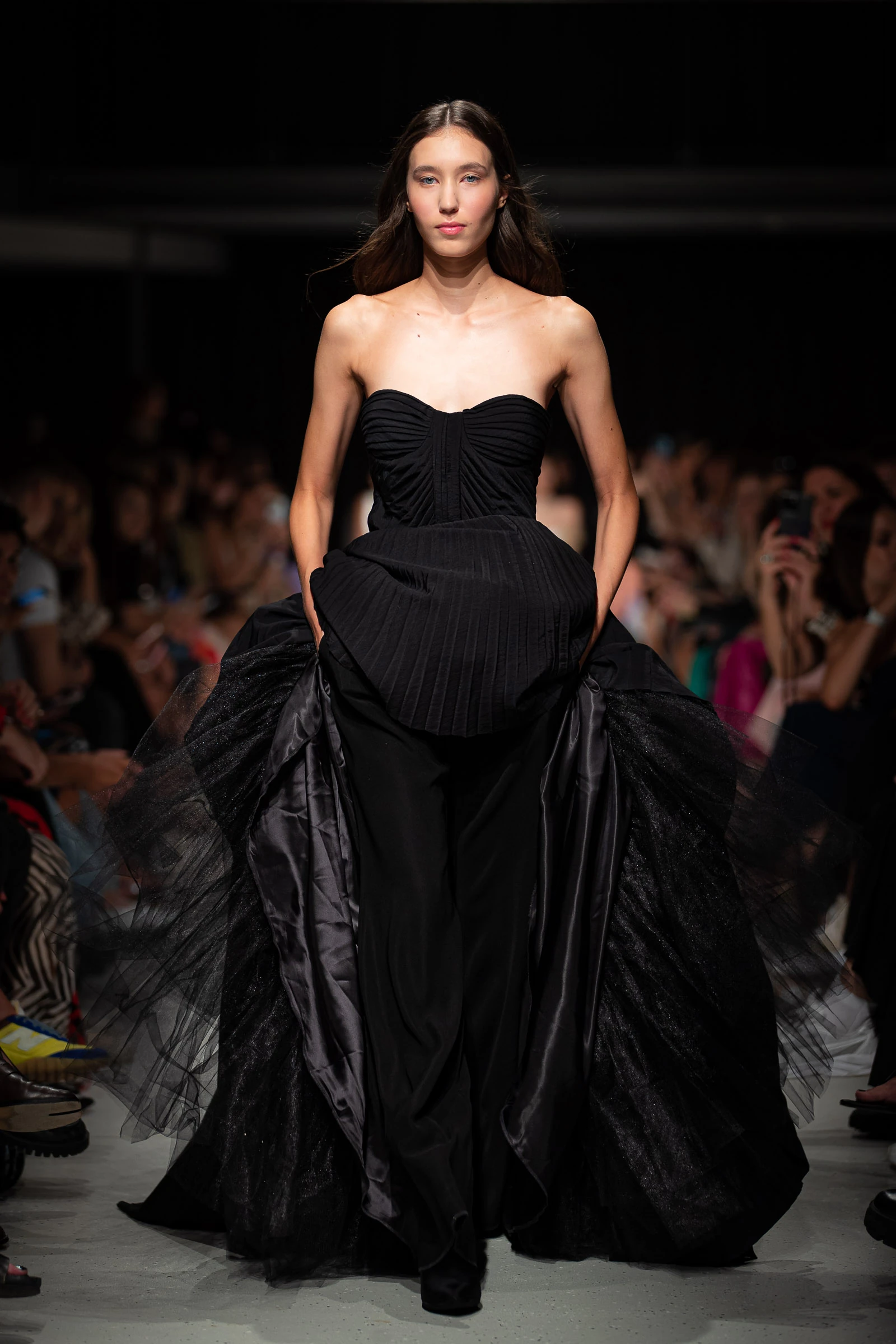 Lasha Mdinaradze egy évvel ezelőtt mutatkozott be a BCEFW-n, ezúttal pedig egy igazán markáns kollekcióval tért vissza. A modellek egytől egyig monokróm fekete összeállításokban sétáltak végig a kifutón, ezáltal még hangsúlyosabbá vált az egyes darabok részletgazdag kidolgozottsága. „Örülök, hogy az ukrán divat megjelenhet itt, és ebben a szörnyű időszakban is megmutathatjuk másoknak, hogy mit csinálunk. Az ukrán tervezők még mindig jelen vannak.” – osztotta meg velünk tervező 2022-ben.