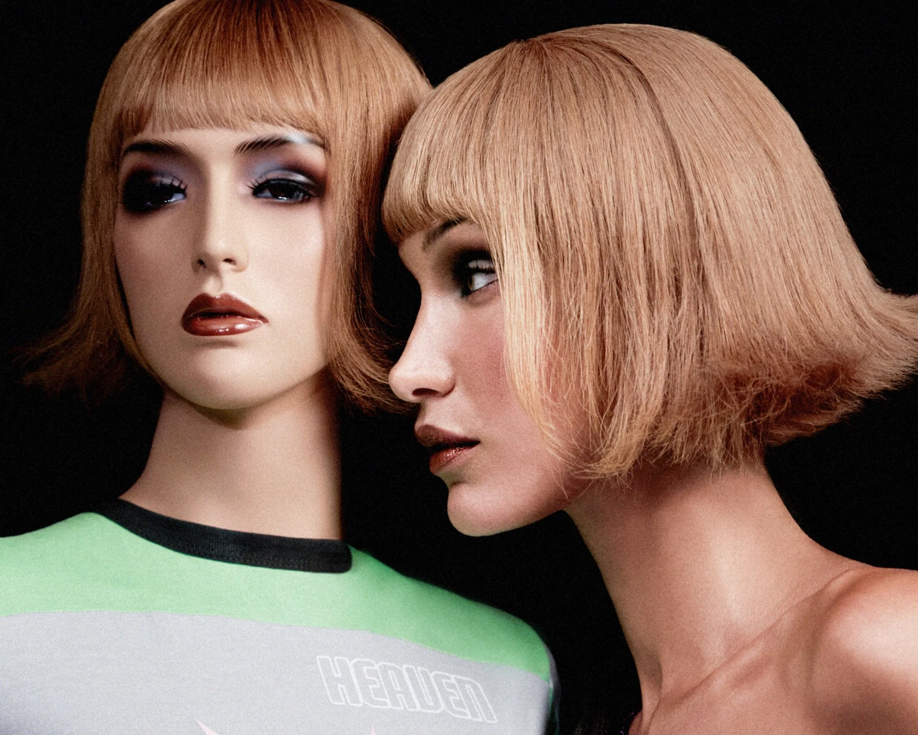 Aggodalomra semmi ok a Vogue információi szerint a modell valójában nem borotválta le a fejét, a fotózás után Bella Hadid visszatért az eredeti barna tincseihez. A kampányfotók között találunk olyat is, ahogy a szőke bobot viselő szupermodell egy hasonmás robottal pózol. A megjelenésekért Bella Hadid glam-csapata felelt. Evanie Frausto volt a fodrász, míg a sminkjét Sam Visser készítette