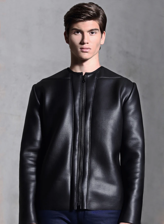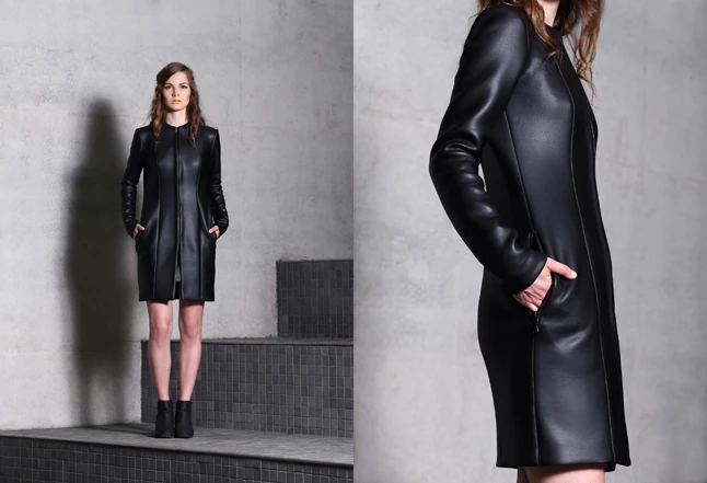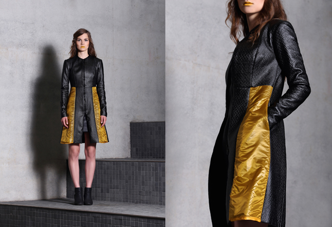 Anyagválasztáskor törekedtem természetes, finom tapintású anyagokat keresni, a felhasznált textilek közt vannak pamutból, gyapjúból, lenből készültek is. Az image darabokhoz, kabátokhoz pedig műbőr hatású neopréneket választottam.